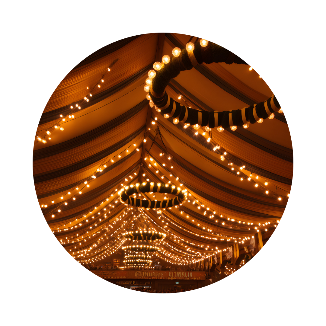 Enjoy stylish outdoor arrangements with lighting, tents, and cozy seating.