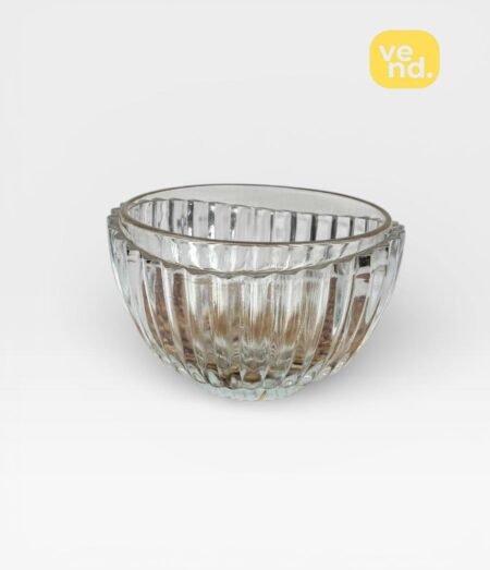 Serve desserts beautifully at your next celebration with this elegant clear ribbed glass bowl. Available for hourly rental.