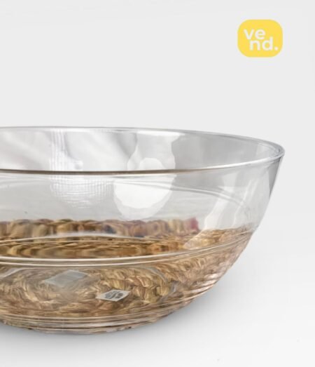 Serve your salads or desserts elegantly in this deep, high-quality clear glass bowl. A perfect addition to wedding buffets and available for hourly rental.