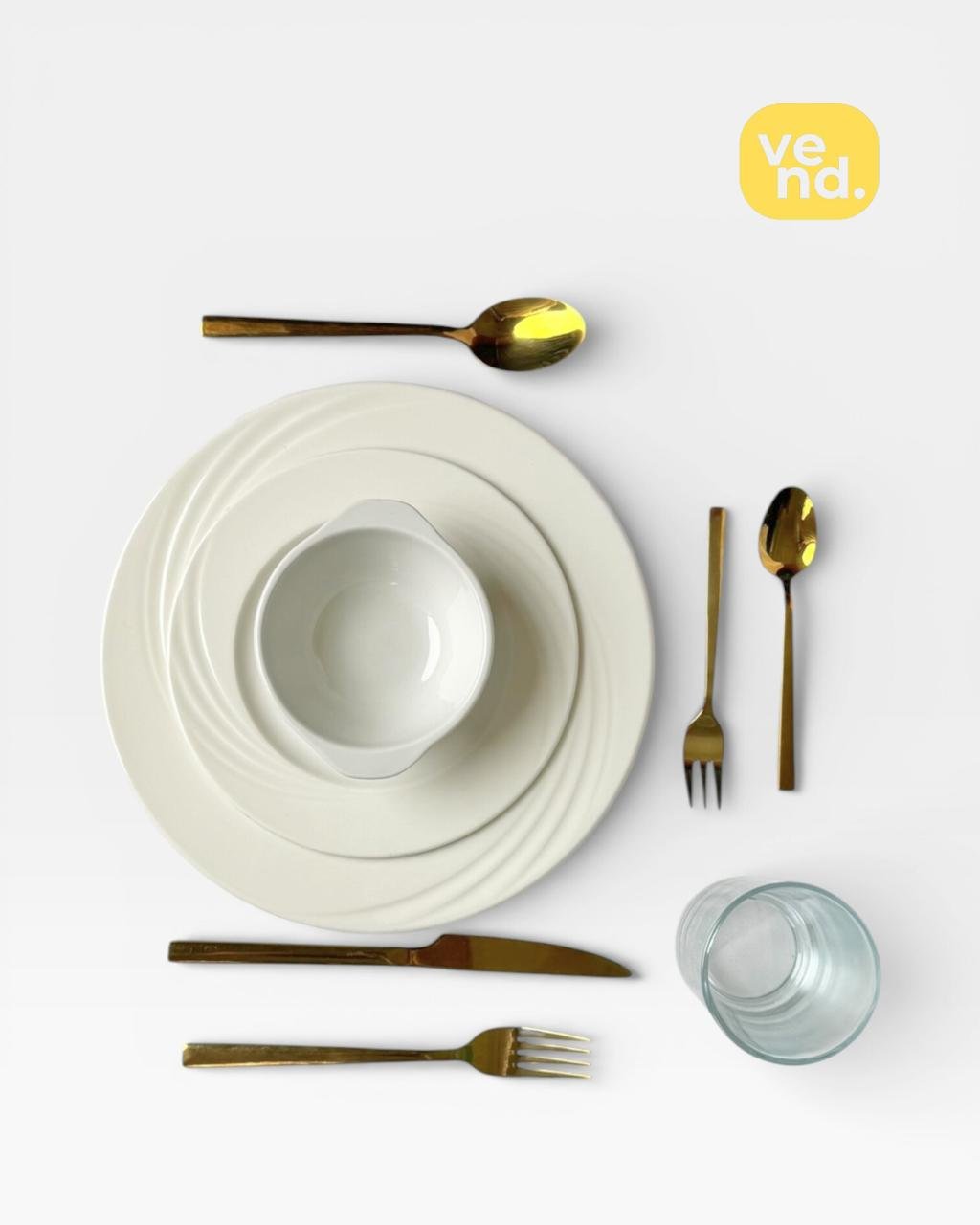 Tags: Dining & Catering, full place setting, modern tableware, rentals, sets, white plates